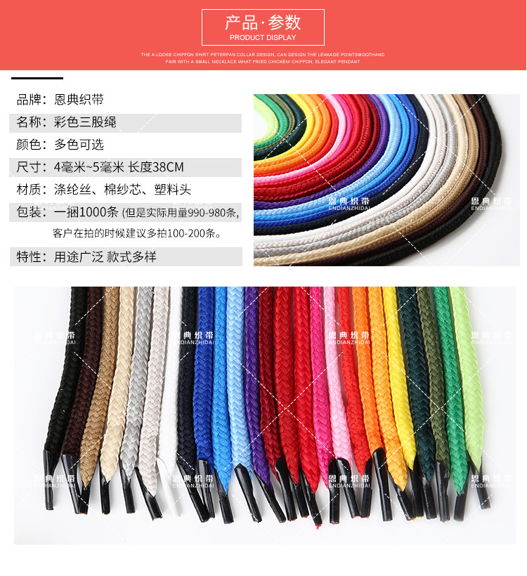定制厂家涤纶编织礼品袋手提绳 彩色三股手提绳低弹绳批发